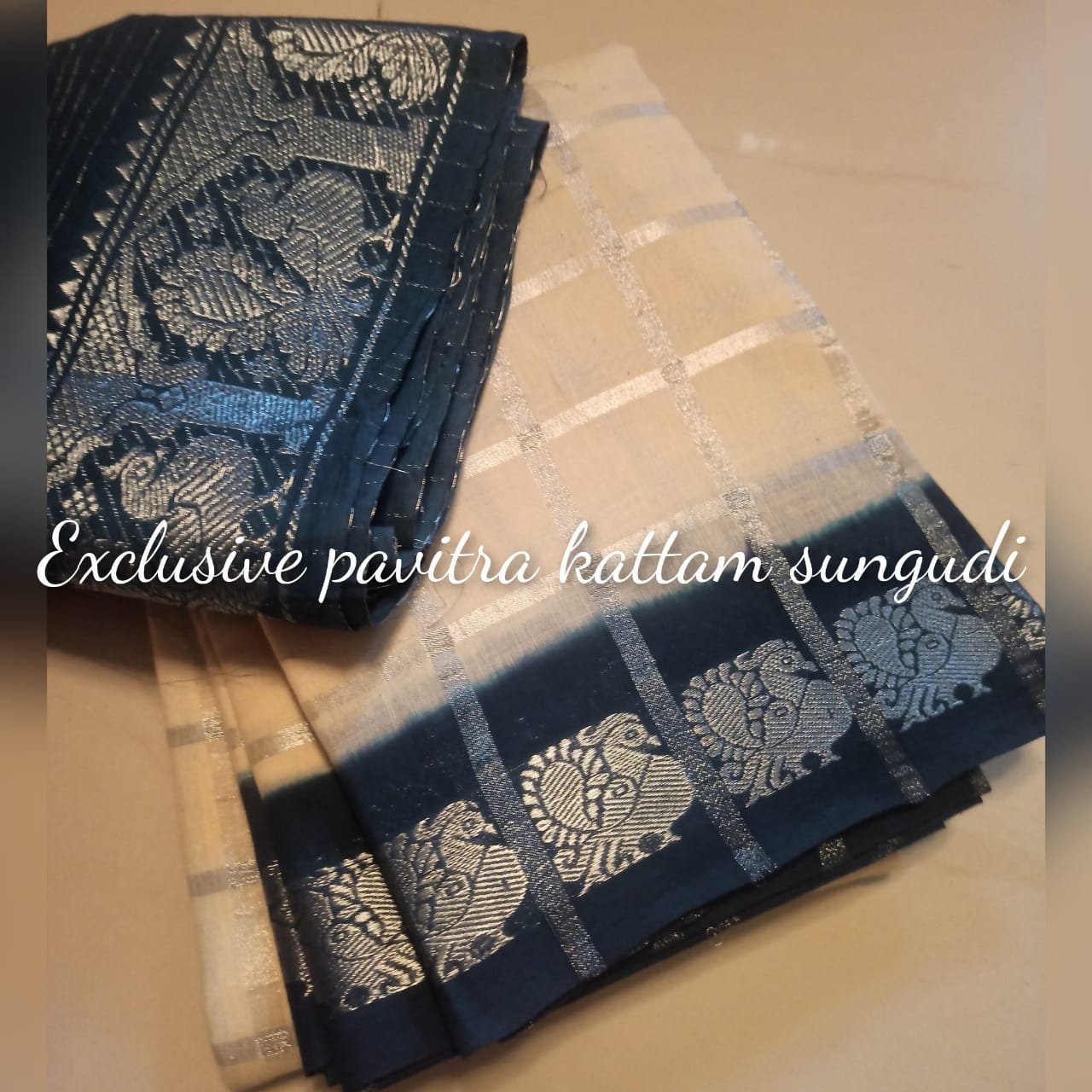PAVITRA SILVER SUNGUDI COTTON SAREE NAVY BLUE